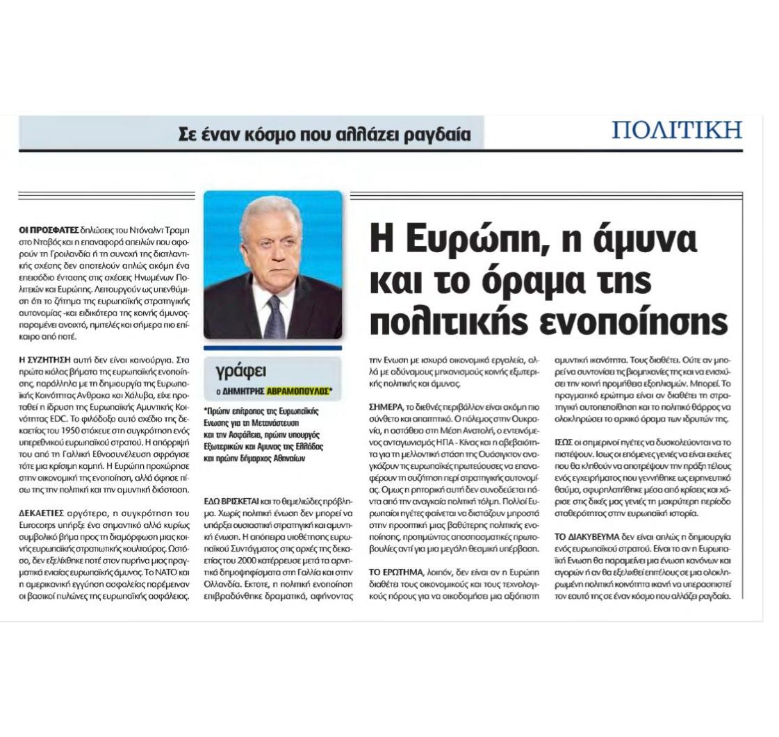 Άρθρο στην εφημερίδα “Real News” με τίτλο: “Η Ευρώπη, η άμυνα και το όραμα της πολιτικής ενοποίησης”, 25/1/2026